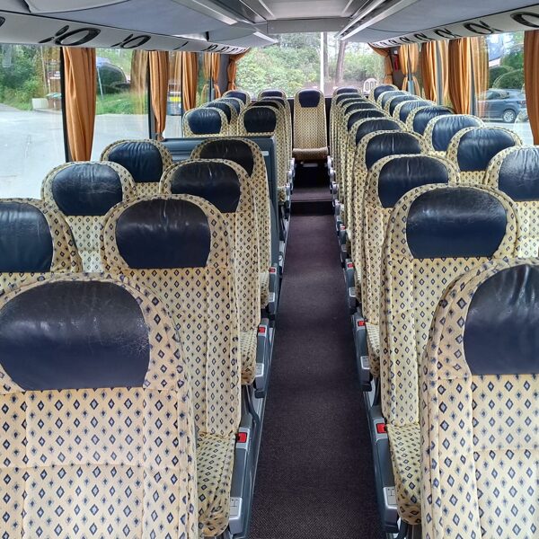 seats; Camber glass; Air conditioner; Fridge; Jump - seats; Microphone; Capacious baggage carriers